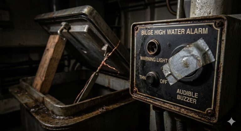 The disabling of the booby hatch alarm indicator was a fundamental breach of safety management. Alarms exist as the ship’s immune system. Bypassing them — even temporarily — removes the early warning that allows crews to prevent minor issues from becoming major casualties.
